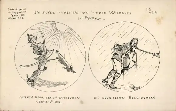 Künstler Ak Belgische Propaganda, Karikatur, Kaiser Wilhelm II., I WK