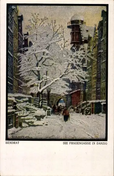 Künstler Ak Bendrat, Gdańsk Danzig, Die Frauengasse, Schnee, Observatorium