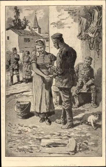 Künstler Ak Bergen, Fritz, Eroberung, deutscher Soldat mit junger Bäuerin