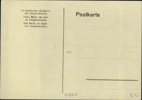Künstler Ak Berlin Mitte, Alt-Berlin, Jungfernbrücke, Nacht