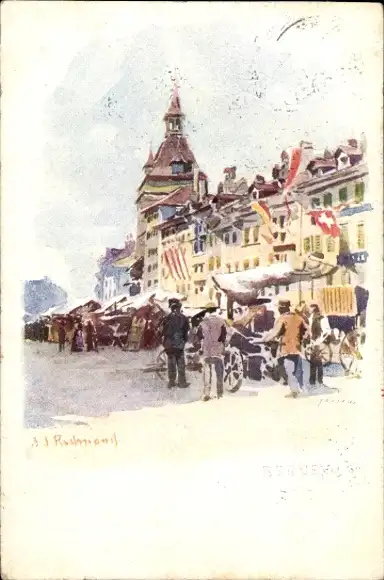 Künstler Ak Bern Stadt Schweiz, Markttag, Stadt im Festschmuck