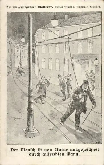 Künstler Ak Betrunkene Männer an Leinen