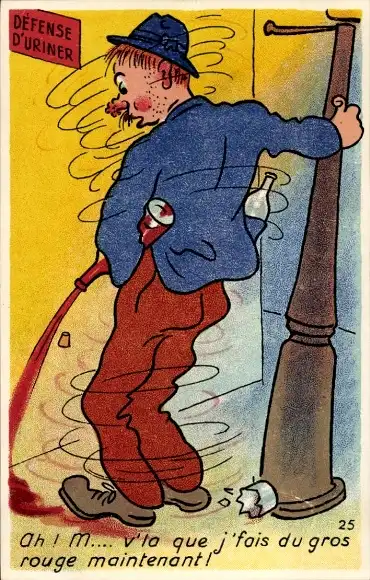 Künstler Ak Betrunkener Mann denkt er pinkelt rot