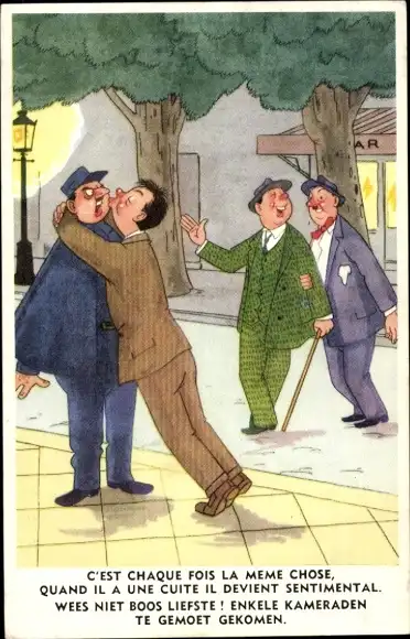 Künstler Ak Betrunkener Mann küsst Polizisten