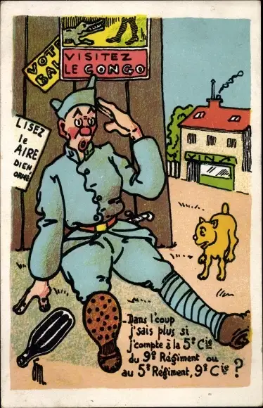 Künstler Ak Betrunkener französischer Soldat