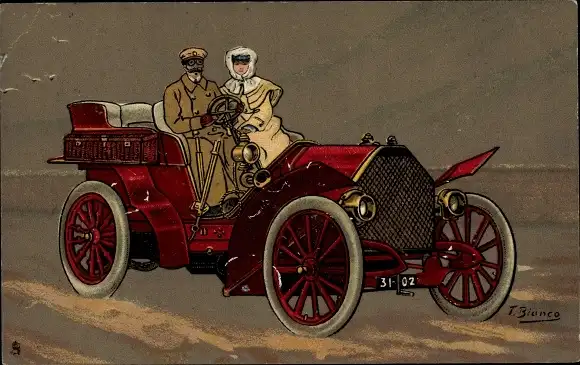 Künstler Ak Bianco, T., Paar in einem Automobil