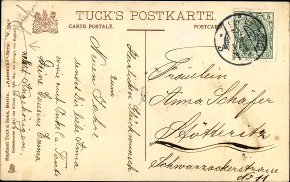 Zustand, siehe Scan, gelaufen, 1909- Tuck 354 B - ca 14 cm X 9 cm
