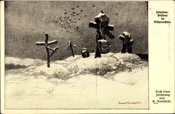 Künstler Ak Bielefeldt, B., Ostpreußen, Feindesgräber, I. WK, Winter