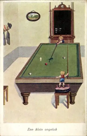 Künstler Ak Billard, Een klein ungeluk, Filz, Queue