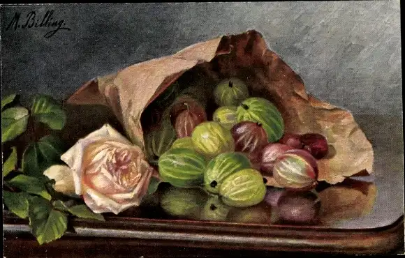 Künstler Ak Billing, M., Stachelbeeren, Stilleben