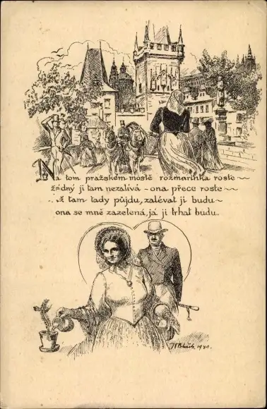 Künstler Ak Blazek, J. T., Prag Tschechien, Na tom prazskem moste rozmarinka roste