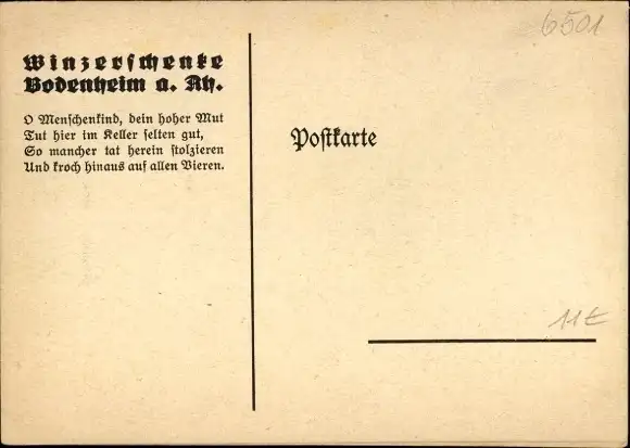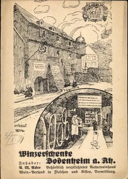 Künstler Ak Bodenheim in Rheinhessen, Winzerschenke, Ansicht 1614, Weinkeller