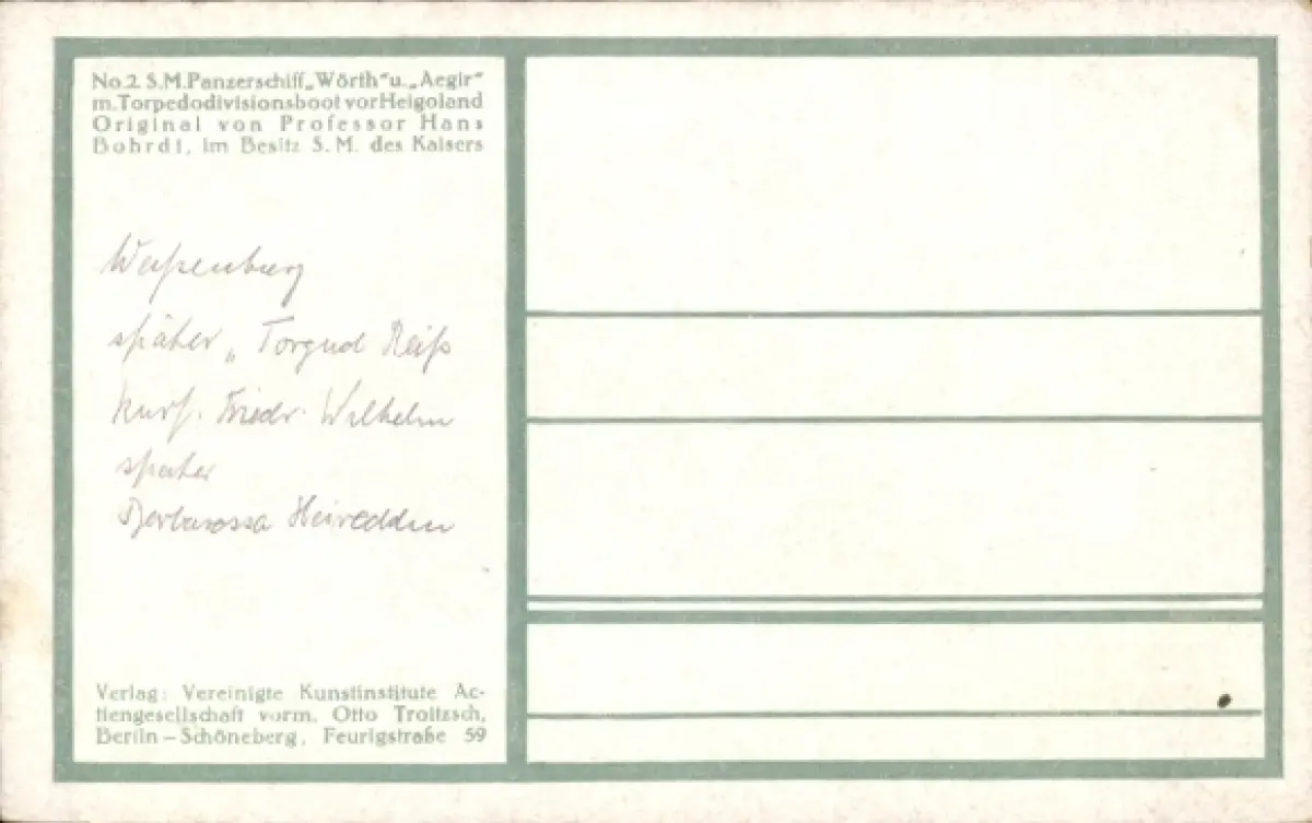 Künstler Ak Bohrdt, Hans, SMS Wörth, SMS Aegir, Panzerschiff, Torpedodivisionsboot vor Helgoland