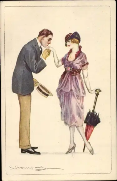Künstler Ak Bompard, Sergio, Liebespaar, Handkuss