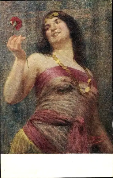 Künstler Ak Borella, R., Rote Nelke, Frau-Porträt