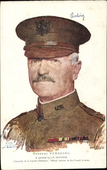 Künstler Ak Bouchor, J. F., General Pershing, Portrait, Uniform