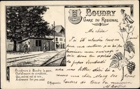 Künstler Ak Boudry Kanton Neuenburg, Bahnhof