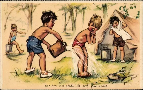 Künstler Ak Bouret, Germaine, Kinder beim Camping, Zelt
