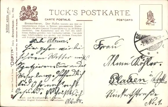 Zustand, siehe Scan, gelaufen, 1915 - ca 14 cm X 9 cm