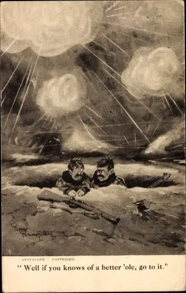 Künstler Ak Britische Soldaten auf dem Schlachtfeld, Well if you knows of a better 'ole, go to it
