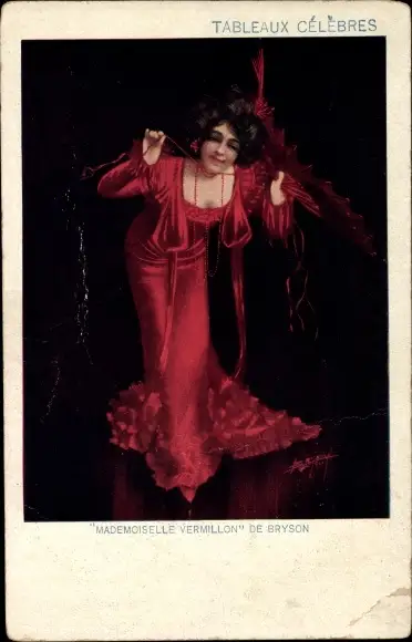 Künstler Ak Bryson, Mademoiselle Vermillon, Frau in rotem Kleid