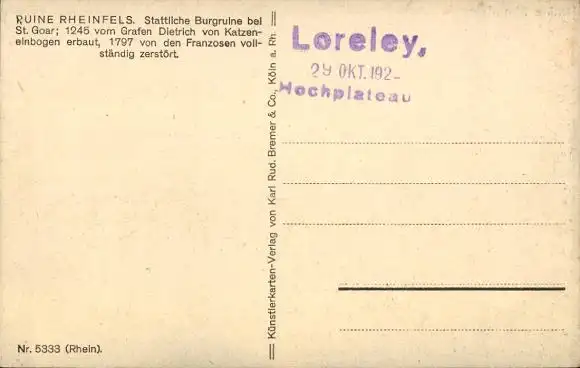Künstler Ak Burger, St. Goar, Blick auf Ruine Rheinfels