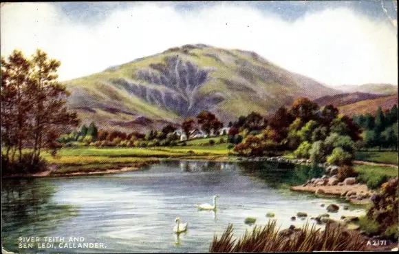 Künstler Ak Callander Schottland, River Teith und Ben Ledi