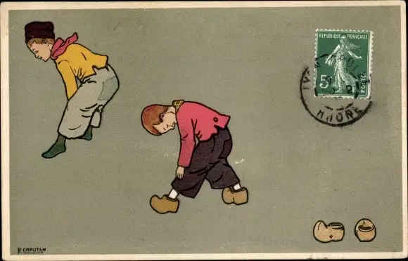 Künstler Ak Caputin, R., Spielende Jungen, Bocksprung