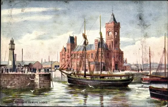 Künstler Ak Cardiff Wales, Entrance to Bute Docks