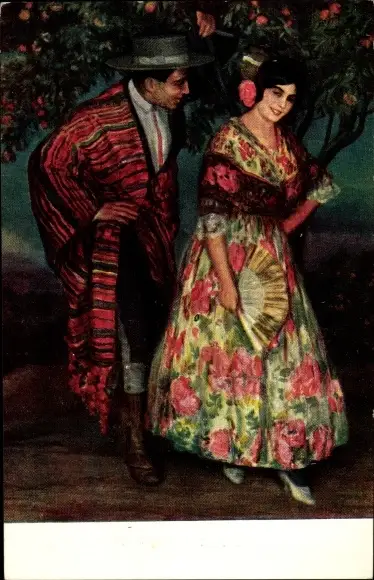 Künstler Ak Cardona, J., Entre naranjos, Paar in spanischen Trachten