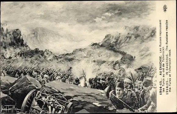 Künstler Ak Caucasus Russia, The Russians repulse the Turks at Tchorockh neck