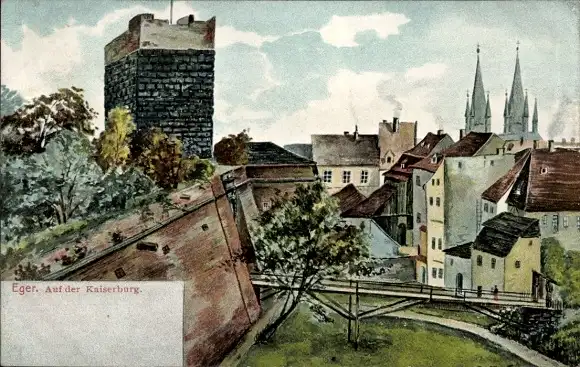 Künstler Ak Cheb Eger Region Karlsbad, Auf der Kaiserburg