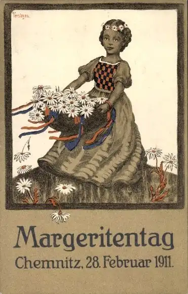 Künstler Ak Chemnitz in Sachsen, Margeritentag, 1911, Mädchen mit Blumenkorb