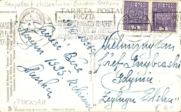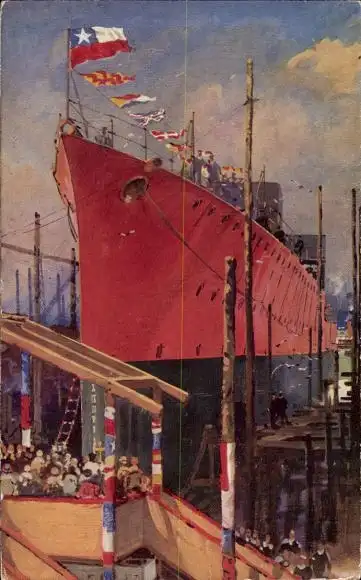 Künstler Ak Chilenisches Kriegsschiff, Stapellauf, Zerstörer Serrano