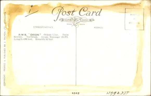 Künstler Ak Church, Bernard W., Dampfer RMS Orion, Orient Line
