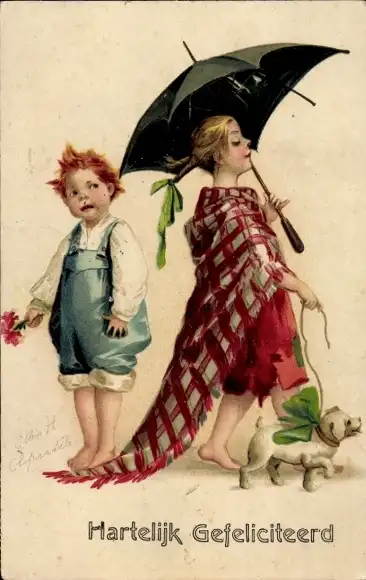 Künstler Ak Clapsaddle, Kinder, Mädchen mit Schirm