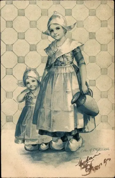 Künstler Ak Clapsaddle, Mädchen in niederländischen Trachten