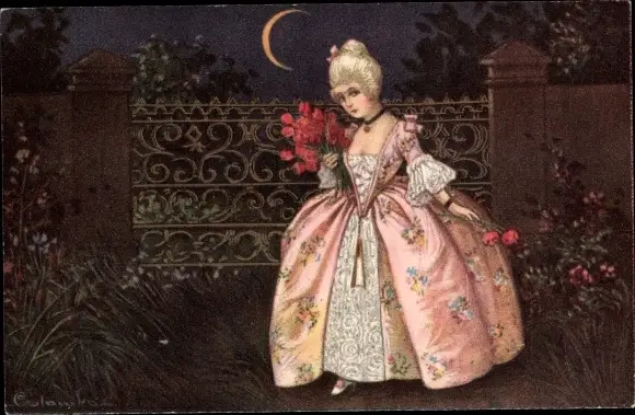 Künstler Ak Colombo, Dame mit Blumenstrauß