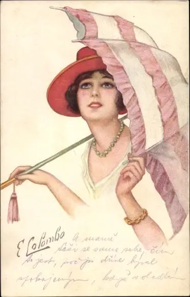 Künstler Ak Colombo, E., Portrait einer Frau mit Sonnenschirm