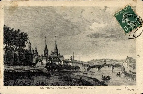 Künstler Ak Compiègne Oise, Brücke, Teilansicht, Türme