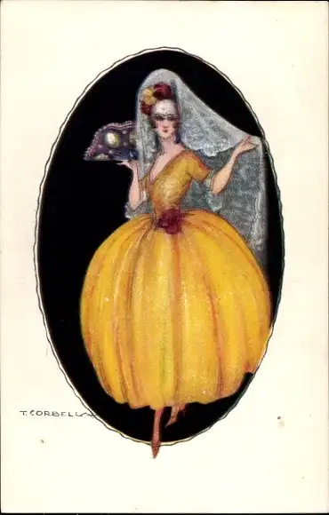 Künstler Ak Corbella, T., Frau mit Spitzenschleier