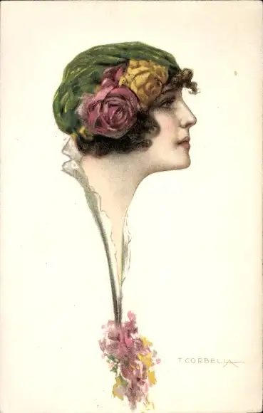 Künstler Ak Corbella, T., Portrait einer Frau mit Blumen im Haar