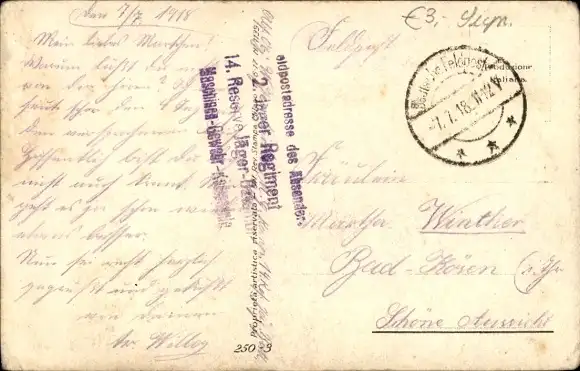 Zustand, siehe Scan, gelaufen, 1918 - ca 14 cm X 9 cm