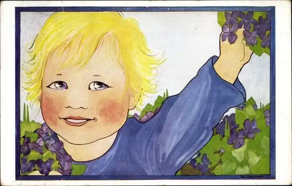 Künstler Ak Cramer, Rie, Blondes Kind mit Blumen