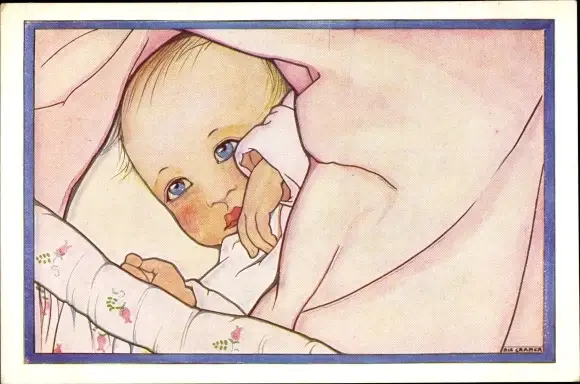 Künstler Ak Cramer, Rie, Kind in der Wiege