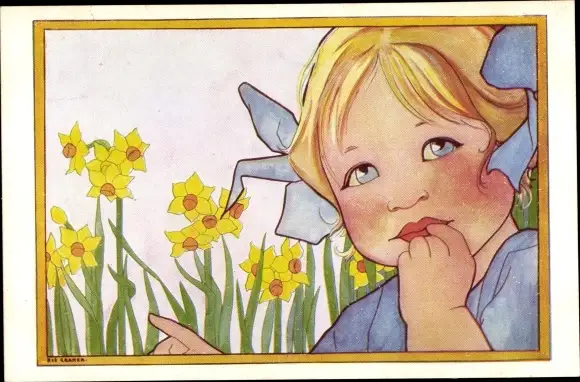 Künstler Ak Cramer, Rie, Mädchen, Narzissen