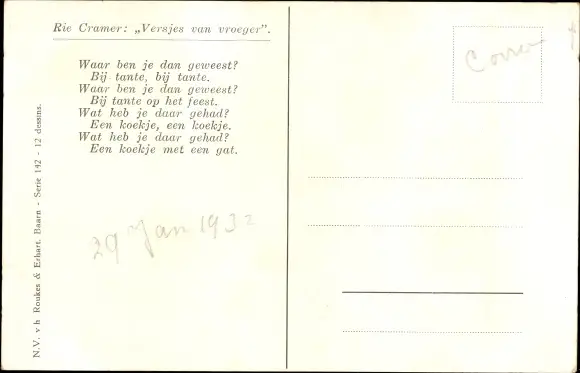 Künstler Ak Cramer, Rie, Versjes van vroeger, Waar ben je dan geweest