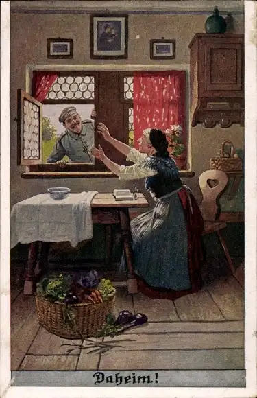 Künstler Ak Daheim, Soldat kehrt Heim, Mutter