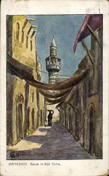 Künstler Ak Damas Damaskus Syrien, Gasse in Bab Tuma