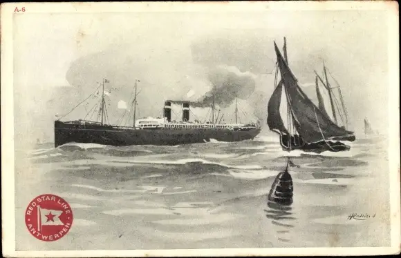 Künstler Ak Dampfer, Dampfschiff, Red Star Line, Segelboot